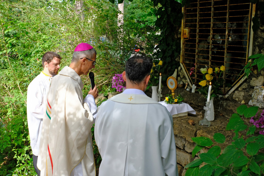 A szertartás végén a templomban őrzött Lisieux-i Szent Teréz-ereklyével az ünneplő közösség – immár az új harang hangjával kísérve – kiment a templomkertben található lourdes-i barlanghoz, ahol rövid imádság után a püspök áldást osztott az ereklyével.
