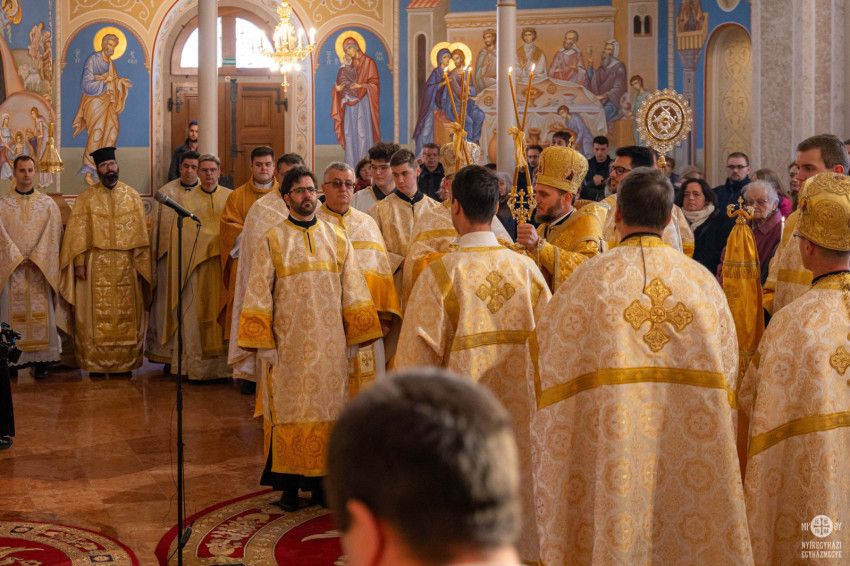Az első papi feladatait a hierarcha oldalán végezte el az újszentelt: kezébe vette a bárányt, áldoztatott, amboni imát mondott, áldást osztott, és mirovált.
