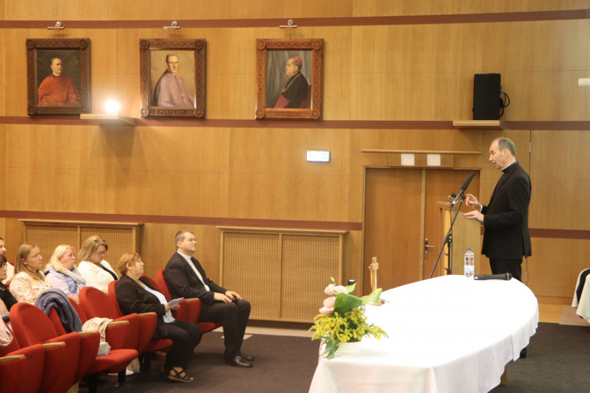 Felker Zsolt hitoktatási referens atya felkérésére először Dékány Árpád Sixtus OCist emeritus apát, a veszprémi Főegyházmegyei Katolikus Iskolák Főhatóságának vezetője tartott előadást, a Katolikus iskolák és óvodák fontossága a Veszprémi Főegyházmegyében címmel.