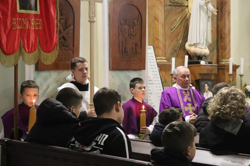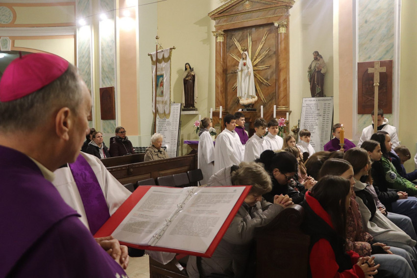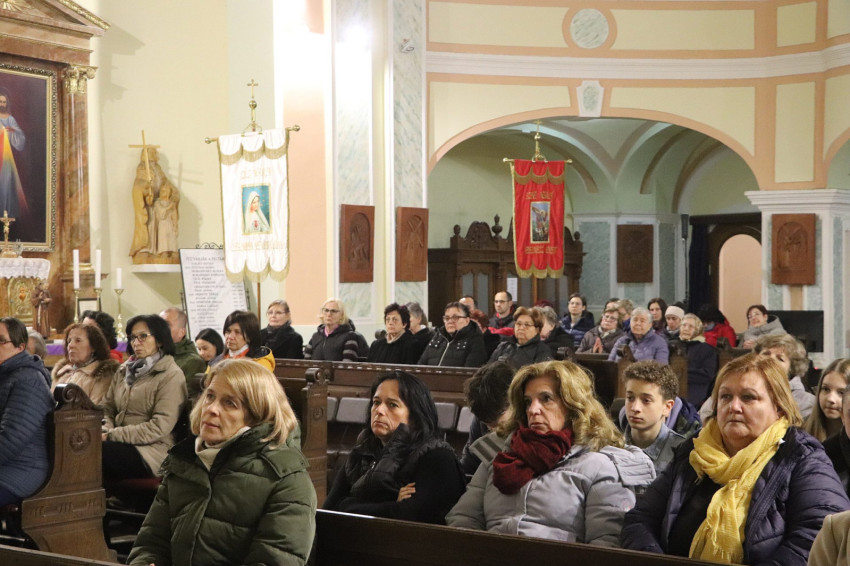 A keresztút alatt a templom teljesen megtelt: gyermekek, fiatalok, családok és idősek gyűltek össze.