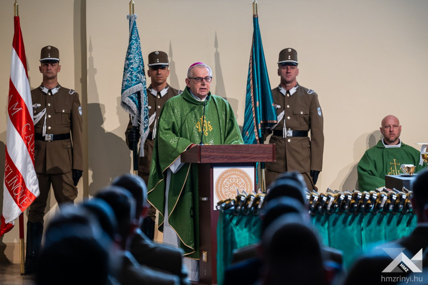 A szentmisét Berta Tibor dandártábornok, katolikus tábori püspök celebrálta. „A szeretet sajátságos bajtársiasság, amely meghatározó lesz az eljövendő katonai feladatok végrehajtásában. Ez a szeretet érvényesül akkor, amikor szolgálatukat pontos lelkiismeretességgel, áldozatkészen és állhatatosan látják el, amely alapja a haza iránti hűségnek és a Magyar Honvédség iránti becsületes és őszinte elkötelezettségnek.