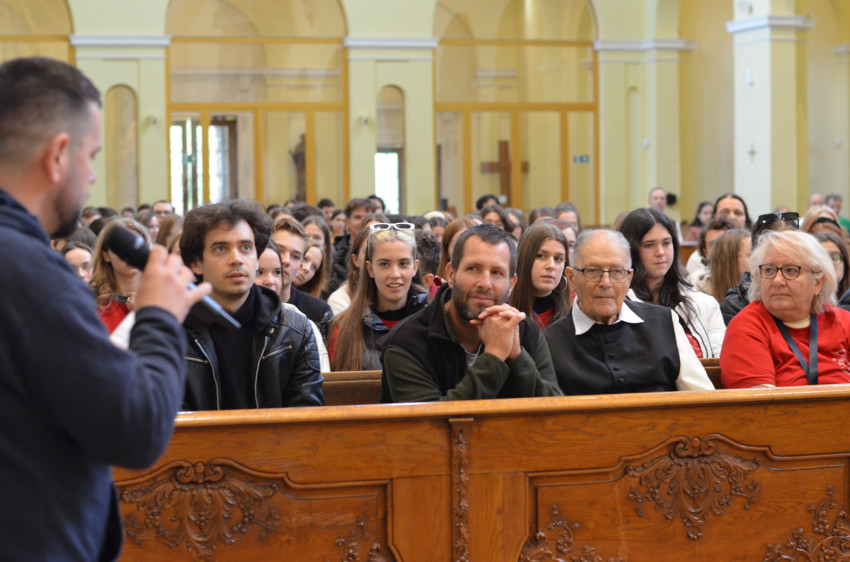 Imára gyűltek össze a találkozót megnyitandó. Elhangzott egy ének, majd Szkaliczki Örs O.Cist egy perc csend megtartására kérte a templomot megtöltő sokaságot. „Itt van Jézus velünk, forduljunk imánkban hozzá.” Ebből a csendből hangzott fel a Miatyánk. Örs atya tájékoztatást adott a vendégeknek Szentimrevárosról, ezzel is segítve megérkezésüket, otthonosságukat.