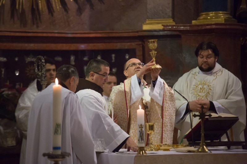 „Két szent öreg, aki találkozik a Megváltóval, és ez a találkozás beteljesíti az életüket; egyikük, Simeon készül a másik világba, a másikuk, Anna még megkapja azt a küldetést, hogy erről beszéljen és ujjongjon. Nekünk is találkozás ez a mai ünnep – hangsúlyozta homíliájában a főpásztor. – Isten emberei találkoznak az ő Mesterükkel, az életük értelmével, és találkoznak egymással is, szerzetes a szerzetessel, szerzetesnő a szerzetesnővel.”