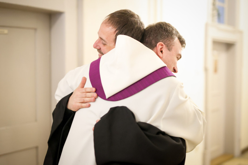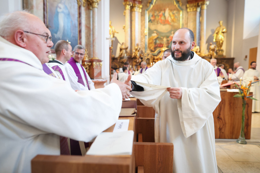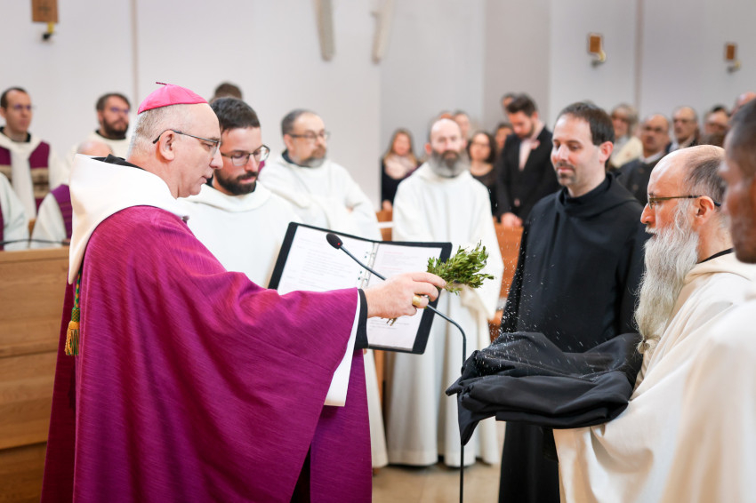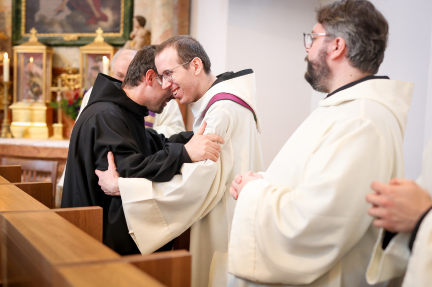 Megáldotta a kórusruhát, amit felsegítettek az örökfogadalmas szerzetesre, aki aztán békecsókot váltott bencés közösségének tagjaival.