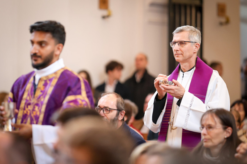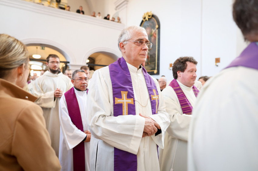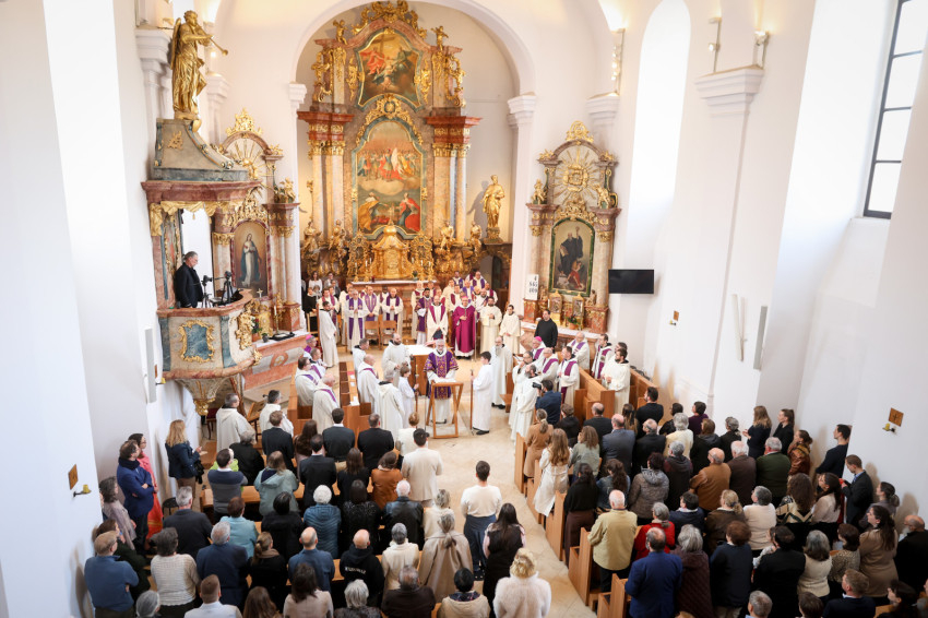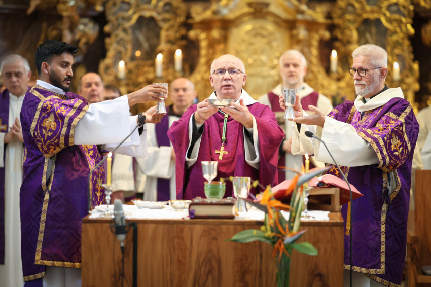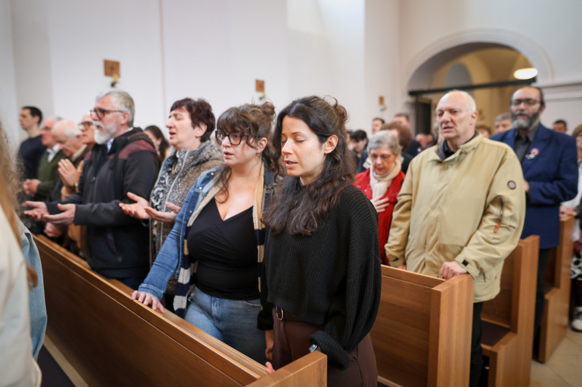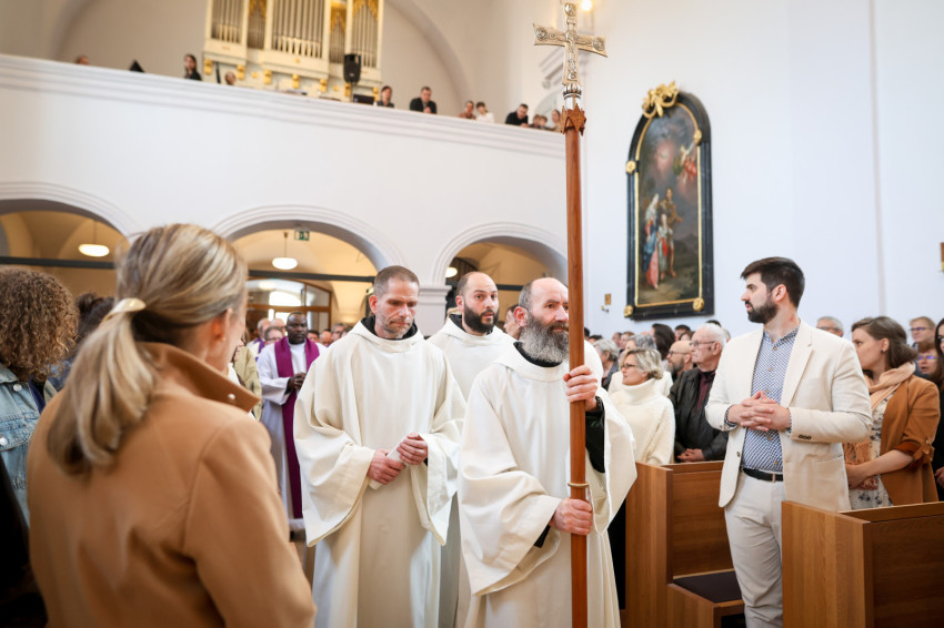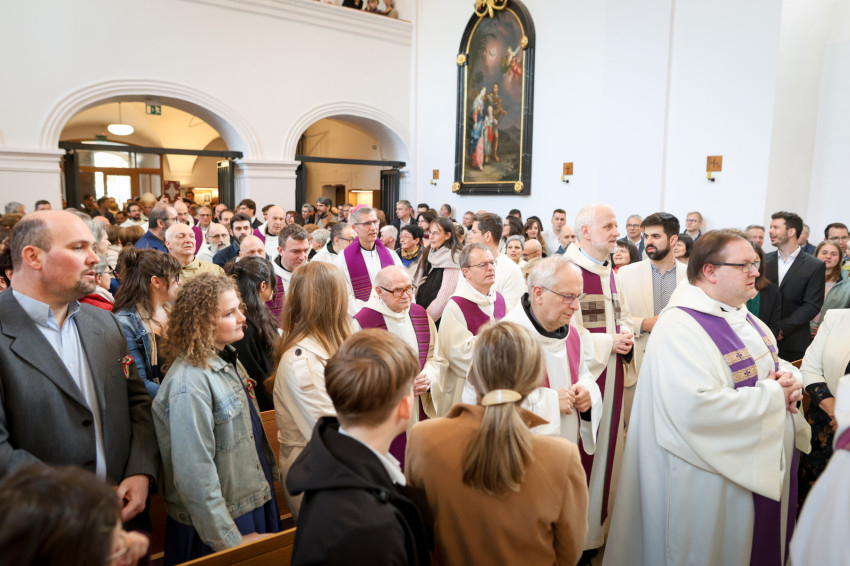 A teljesen megtelt templomba hosszú sorban vonultak be a koncelebráló papok és a szerzetesek a taizéi Szentlélek-hívó ének alatt.