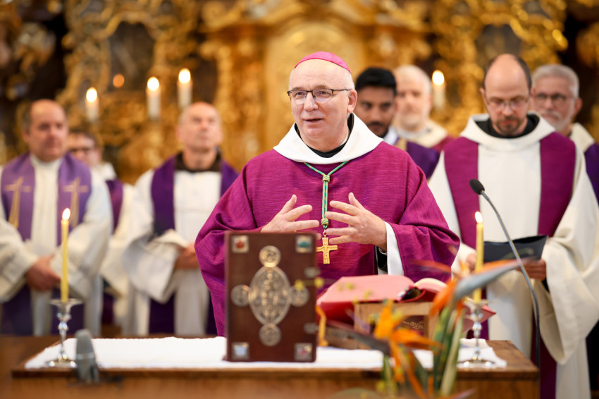 Máté evangéliumában olvashatjuk: a tisztaszívűek látják az Istent; a mai evangéliumban pedig a vakon született meggyógyul, látóvá lesz – folytatta beszédét Baán Izsák. – Isten látó szívet keres. „Hajlítsd a szíved fülét a mester parancsainak befogadására” – mondja Szent Benedek.