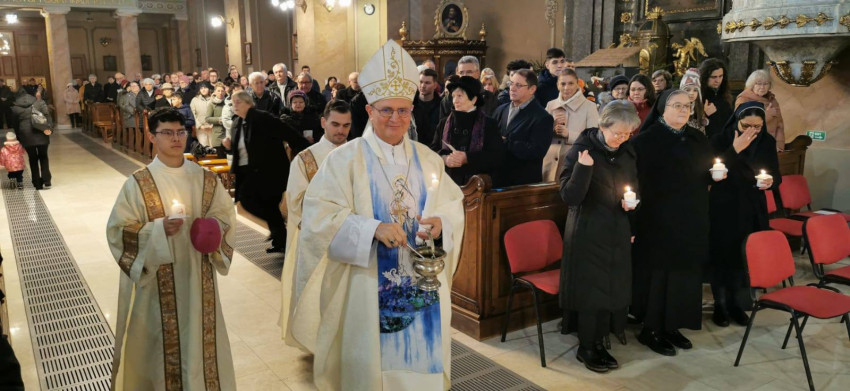 Schönberger Jenő püspök homíliájában kiemelte, hogy a keresztény hivatás egyik legmélyebb szimbóluma a gyertya, mely önmagát felemésztve másoknak világít. Kifejezi azt a teljes odaadást Istennek, amelyet a szerzetesi élet az evangéliumi tanácsok – szegénység, tisztaság és engedelmesség – által jelenít meg az Egyházban és a világban. A szerzetesek tanúságtétele a remény jele azok számára, akiket az élet a társadalom peremére sodort. Jézus szelídségét és irgalmát hordozva lehajolnak az elesettekhez, és mindenkit emlékeztetnek arra, hogy Isten közel van, és minden embert szent életre hív.
