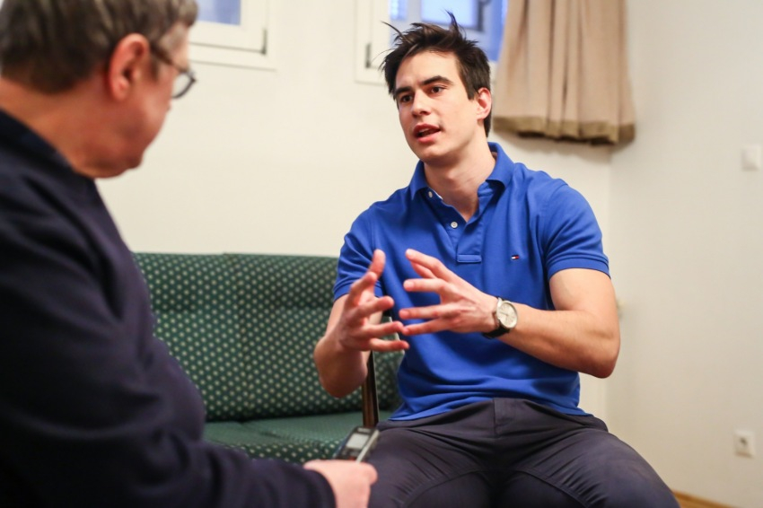 A templom plébániáján beszélgetünk Meskó Zsolttal, aki rendezte is a darabot; a 25 éves, mai fiatalembert megjelenítő Hillier Marcell-lal, a Kísértőt játszó Andréka Ágostonnal és a Veronikát alakító Gábor Mónikával.