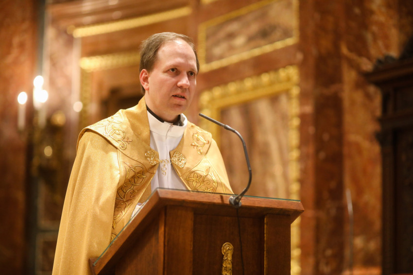 Prédikációja végén a káplán azt a különleges kegyelmet kérte a Szentlélektől, hogy ott, ahol az emberi akarat és erő még nem elegendő a békesség megteremtéséhez, a kiengesztelődéshez, megbocsátáshoz, az Ő világossága ragyogja be a hívek és a döntéshozó államférfiak elméjét és szívét.