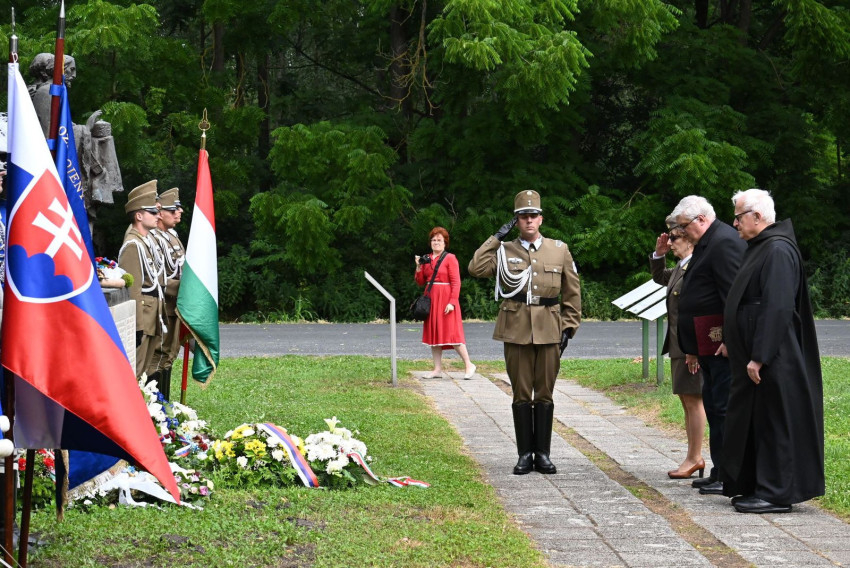 Az ő itteni jelenlétükre emlékeztek június 22-én a tiszteletükre felállított emlékszobornál, amelynek megkoszorúzása katonai tiszteletadással történt, mindkét fél részéről. A koszorúzás után František Rábek tábori püspök a jelenlévő szlovák és magyar lelkészekkel szentmisét mutatott be a Szent Adorján-bazilika romjainál.