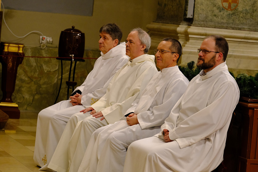 Az ünnepi szentmisén koncelebrált Balogh Attila, az esztergomi Érseki Papnevelő Intézet rektora, aki a főegyházmegyében az állandó diakónusok képzését vezeti az Esztergomi Hittudományi Főiskolán; Horváth Zoltán, az Avilai Nagy Szent Teréz-templom esperes-plébánosa; Szederkényi Károly, a gazdagréti Szent Angyalok-templom plébánosa; Repcsik Gyula, a kőbányai Szent László-templom plébánosa; Fehér Zoltán, az újpalotai Boldog Salkaházi Sára-templom plébániai kormányzója; Őri Imre, a kispesti Jézus Szíve-templom plébániai kormányzója és Alpek Gergely terézvárosi káplán.