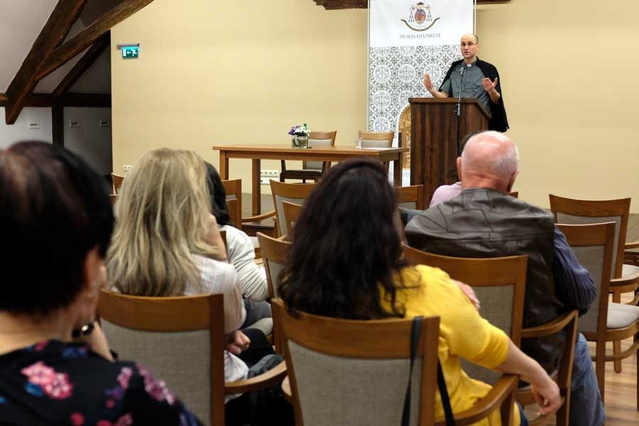 Közös imádság és rövid köszöntő után Nyúl Viktor, a Pécsi Egyházmegye pasztorális helynöke a szentgyónásról tartott elmélkedést. Az előadó rámutatott: a szentgyónás találkozás Istennel, önmagunkkal és a közösséggel. Arra buzdította a résztvevőket, hogy legyenek szelídebbek magukhoz, törekedjenek a fejlődésre, bocsássanak meg testvéreiknek. Amit szeretettel teszünk, az marad meg – utalt Nyúl Viktor a szeretethimnuszra. Hangsúlyozta: a munkát és szolgálatot kísérje mindig imádság.