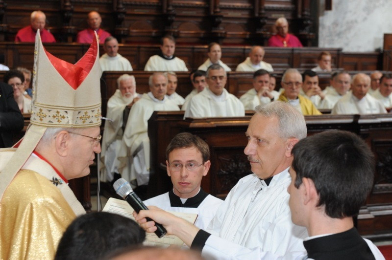– A főpásztor dönt arról, hogy kiket vesz fel diakónusi képzésre, amely nem indul rendszeresen, évről évre, mint a papképzés. (A mostani szentelést megelőzően legutóbb 2011-ben szentelt Erdő Péter diakónust Dudás Zoltán személyében.) A vatikáni dokumentum hároméves képzést javasol, a gyakorlatban az egyes egyházmegyékben egy, két vagy három év alatt történik meg a formáció. Az Esztergom-Budapesti Főegyházmegyében jelenleg egyéves képzést tartunk, de ezt kétévesre szeretnénk bővíteni. Diakónusnak csak olyan hitüket rendszeresen és mélyen gyakorló családos férfiak jelentkezhetnek, aki már előzetesen teológiai végzettséget szereztek, akár egyetemen, akár főiskolán. A képzés eleji orientáció során a jelöltek látásmódját, identitását formálják, majd gyakorlati és lelki képzésben részesítik őket, hogy helyt tudjanak állni olyan liturgikus cselekményeken, mint a keresztelés, esketés vagy temetés szertartása, vagy megfelelő szentbeszédet tudjanak mondani.