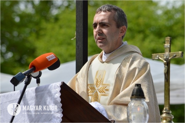 A templom mögötti fás ligetben felépített szabadtéri oltárnál Császár István általános helynök és a jelenlévő papok együtt mutattak be az ünnepi szentmisét.