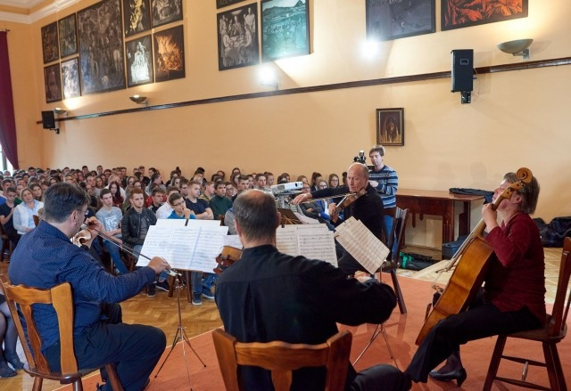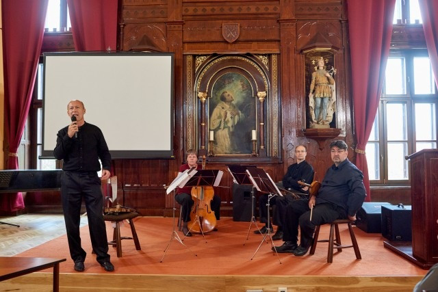 A premontrei gimnáziumban elhangzó koncerten a ma kevésbé ismert Franz Krommer cseh zeneszerző Trois Quatours című művét adta elő az Authentic Quartet – Kalló Zsolt (hegedű), Bozzai Balázs (hegedű), Rác Gábor (brácsa) és Vályi Csilla (cselló).
