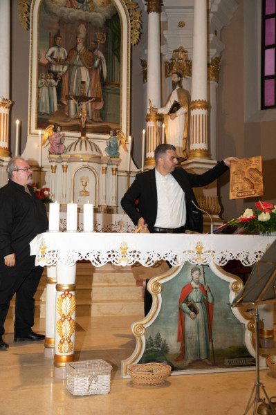 „Hála és köszönet elsősorban az Istennek, a mai szép ünnepért és a kegyelmi ajándékokért, a találkozás öröméért. Ugyanakkor köszönet az érsek és püspök atyáknak, valamint a paptestvéreknek, hogy megtiszteltek jelenlétükkel és együtt mutathattuk be a legszentebb áldozatot a megújult templomban. Köszönjük népünkért végzett imádságaikat, fáradozásukat, valamint egyházmegyei szolgálatukat – mondta a plébános, aki köszönetét fejezte ki továbbá az egyházközség szülöttének, Kosztándi István hegedűművésznek is, aki játékával emelte az esemény fényét, illetve Gergely Gábornak, a Boldog Özséb Plébánia kántorának, aki orgonán működött közre a koncerten.
