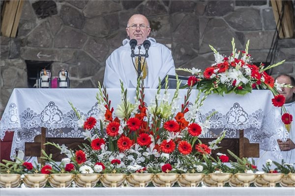 Kedves testvéreim, ezt az áldást élvezzük most, a Jóistennek a gyönyörű teremtett világában, e csíki tájban, ahol ezt a teret betöltöttük, de ahonnan Isten áldását és a Boldogságos Szűzanya áldását akarjuk magunkkal vinni, hogy betöltsük azt az életteret is, ahol mindennapjainkat éljük. A családi ház életterét, a falunak, a városnak az életterét, az országnak az életterét, mert Isten áldása erre is szól. És ha jó nekünk itt, a somlyói szent hegyen összekapaszkodva imádkozni, akkor ebből erőt kell merítsünk ahhoz, hogy otthon is, családunkkal, házastársunkkal, gyermekünkkel, de falunkkal is, egyházközségünkkel, egész népünkkel összekapaszkodva imádkozzunk. Isten áldását kérjük, hogy a nekünk adott életteret betöltsük, hogy ne maradjon beszegezett ház, gyermek nélküli iskola, megfogyatkozott falu és város, és főleg ne maradjon megfogyatkozott ország és szülőföld. Be kell töltenünk, testvéreim, életterünket! Isten áldása, kedves testvéreim, a teremtő Istennek az áldása, amely megnyilvánul teremtett világában, a világegyetemben és megnyilvánul az emberben is, így kell lecsapódjon ezen szent hely áldásaként a mi mindennapi életünkbe, az én mindennapi életembe.