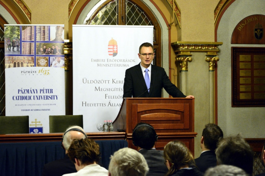 A megjelenteket Fodor György prorektor, dékán és Rétvári Bence, az Emberi Erőforrások Minisztériumának parlamenti államtitkára köszöntötte. Fodor György a PPKE kötelességének nevezte, hogy helyt adjon a keresztények üldözését bemutató konferenciáknak, ez már a tizenegyedik a sorban. Rétvári Bence emlékeztetett rá: a magyar kormány egyedülálló módon helyettes államtitkárságot hozott létre, hogy felhívja a figyelmet a világszerte több millió üldözött keresztény helyzetére, és remélhetőleg a jövőben mások is követni fogják a példánkat. Magyarország egyfajta ébresztőóra a legújabb kori bevándorlási folyamatban. Európa vezetői feladták keresztény önazonosságukat, identitásukat, a magyar kormányzat viszont továbbra is őrzi azt, és vallja, hogy helyben kell megoldani a migrációt kiváltó problémákat.