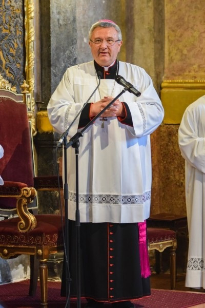 A szentmise elején Veres András győri megyéspüspök külön köszöntötte a Sopronkövesdről érkezett gyalogos zarándokokat.
