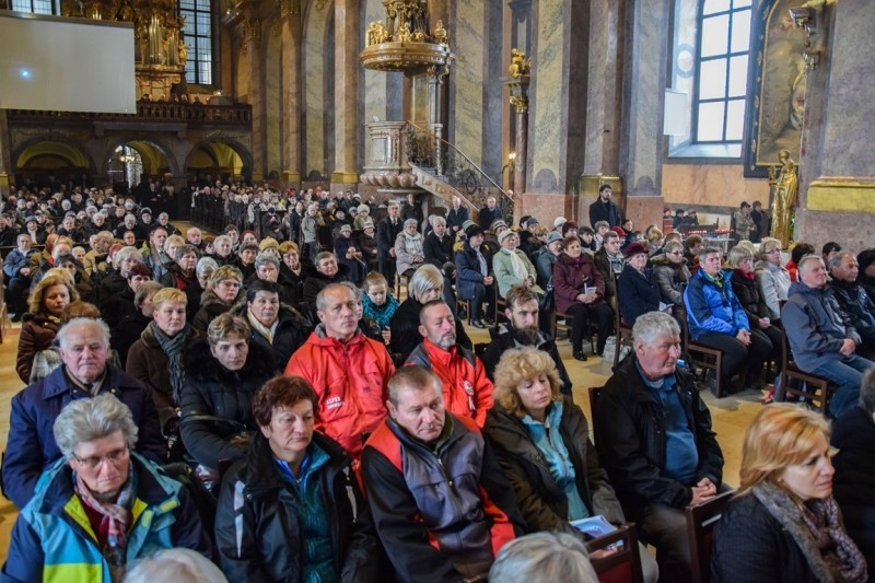 Fazakas Z. Márton OPraem szentbeszédében rámutatott arra, hogy nagyböjt ötödik vasárnapját a népi vallásosság feketevasárnapnak nevezi, ráirányítva a figyelmet a közelgő fájdalomra. De mi nem szomorkodni jöttünk a győri székesegyházba – bátorította az egybegyűlteket. A főcelebráns egy csíksomlyói búcsús ének sorait idézve hangolt örömre: „Nyíljon ki szívetekben az örömvirág, / Zengjetek, hogy hallja meg az egész világ. / Édesanyánk, hozzád jöttünk / Lángadozva, mert szeretünk, / Ó, Szűz Mária, / Hogy köszöntsünk úgy, mint régen / Az Úr angyala.” Ha van egy kis aggódás, szomorúság, gyász, fájdalom a szívünkben, akkor ez ma a Szűzanya csodája révén átváltozhat bizakodássá.