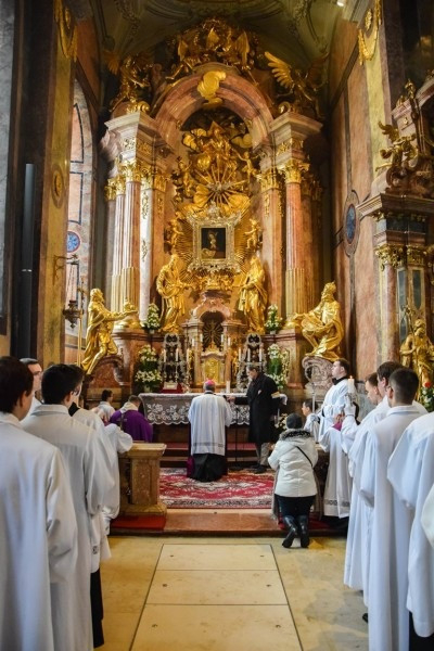 A szentmisét követően a győri megyéspüspök és a csornai apát a koncelebráló lelkipásztorokkal és az asszisztenciával a Könnyező Szűzanya kegyoltára előtt imádkozott.