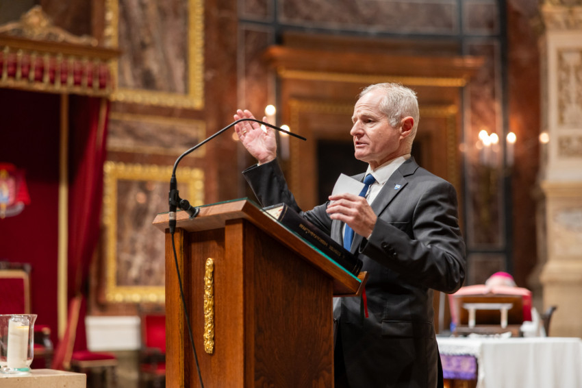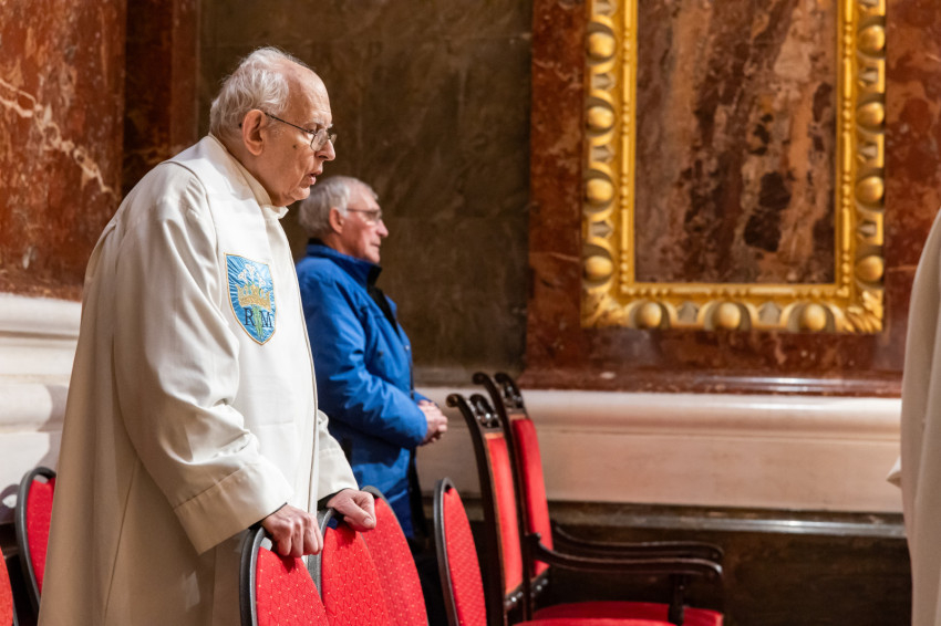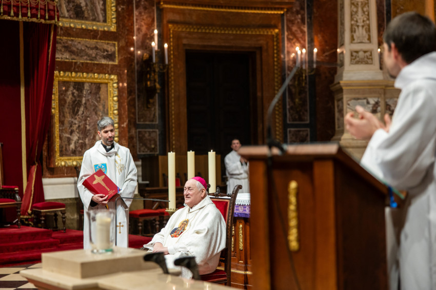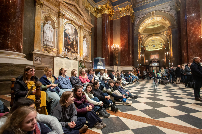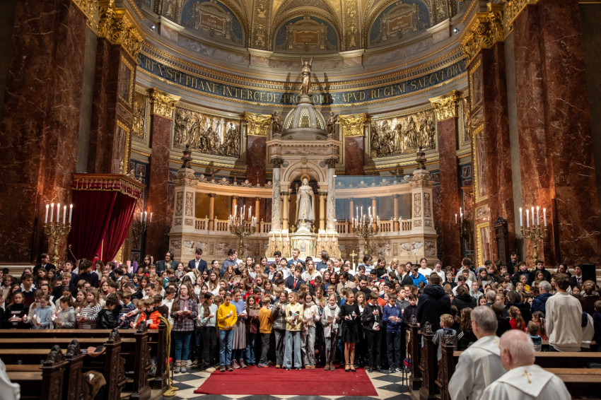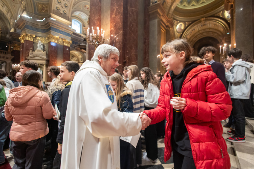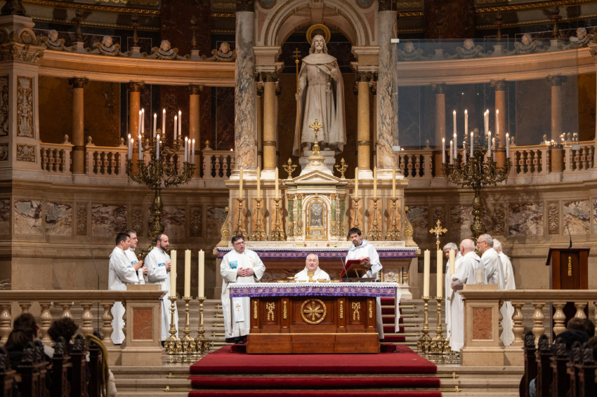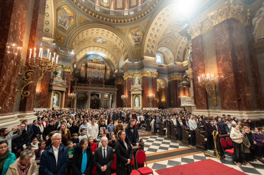 Az ünnepi szentmisére való bevonulás után a Regnum házfőnöke, Horváth István köszöntötte a koncelebráló, meghívott és regnumi atyákat, valamint az ország számos pontjáról érkezett gyerekeket, fiatalokat és vezetőiket, családtagjaikat, akik teljesen megtöltötték a bazilika hatalmas épületét.