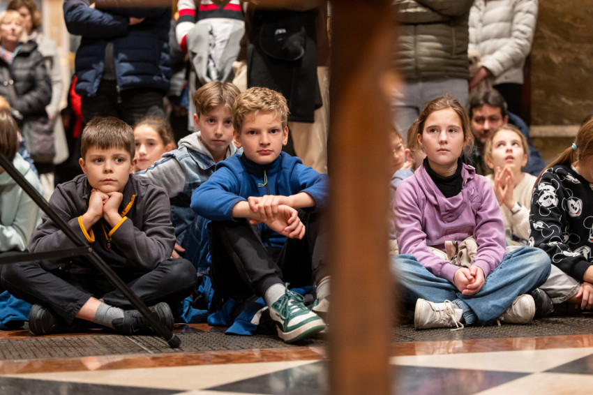 „Azt hittem, hogy a regnumiak is velem együtt öregszenek, de örömteli csalódás van bennem, mert látom, hogy a Regnum fiatalodik. Látjátok, én öreg vagyok, van két botom is – a rendes püspöknek egy botja van, nekem kettő is –, ilyen gazdag vagyok. Örömmel köszöntelek benneteket – szólította meg a gyerekeket Bíró László püspök, aki egészségi állapota miatt ülve misézett.