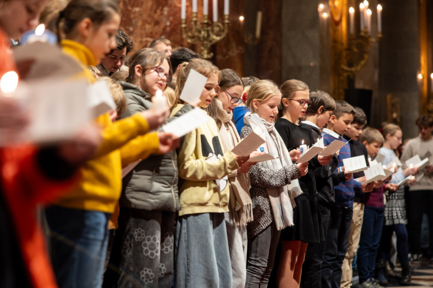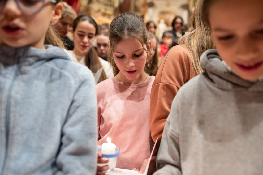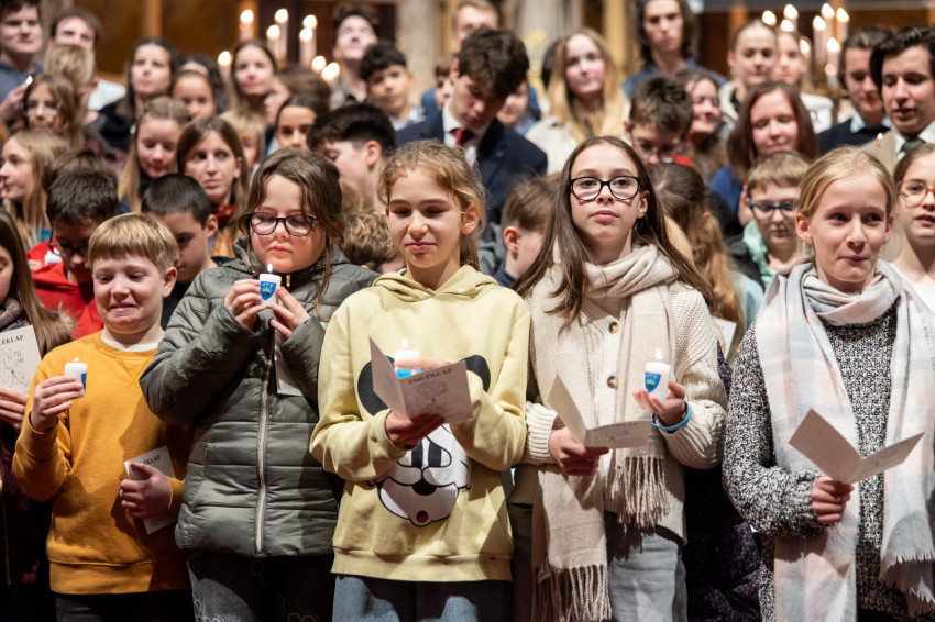 A szentbeszéd után a közösségben először fogadalmat tevő fiatalok a szentély lépcsőin sorakoztak fel, és a hívekkel együtt imádkozták el a hitvallást, a keresztségkor már kimondott „igen” megerősítéseként.