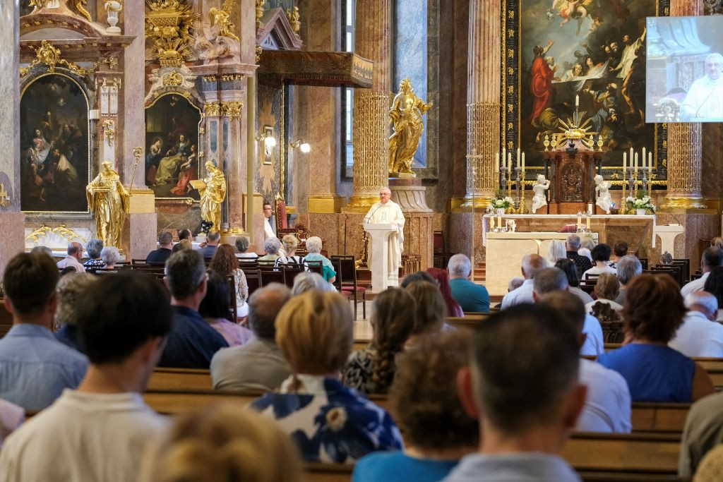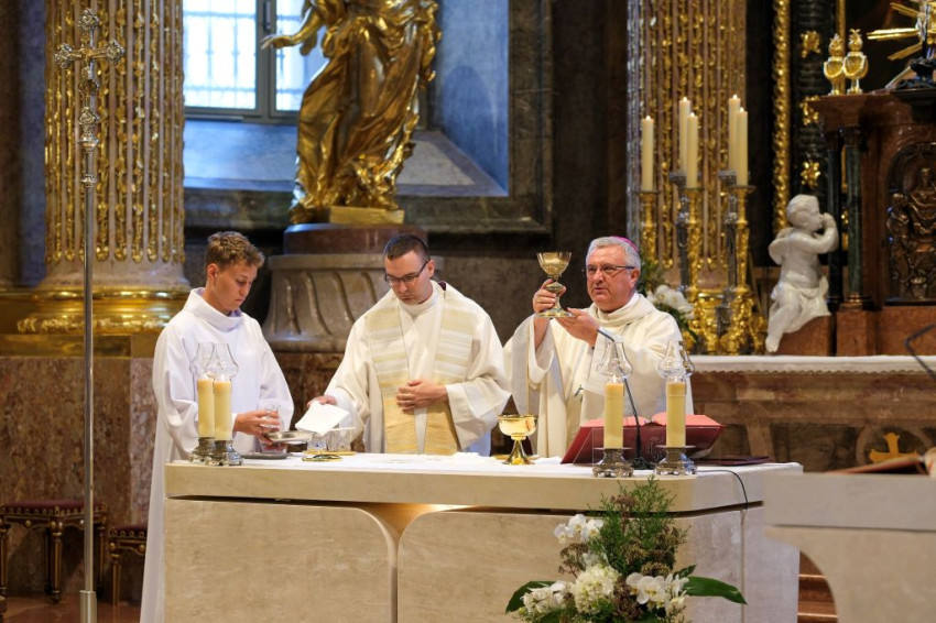 Mennybevételével teljesült a Szűzanya örök vágya, hiszen egész földi életében Isten jelenlétében, Isten szeretetében kívánt élni, ezért is lett ő a kiválasztott. Az isteni előrelátás tudta, hogy az ő szívében ez a vágy kiolthatatlan lesz. Azért tudunk együtt örülni Jézussal ezen az ünnepen, mert bennünk is hála ébred a Szűzanya anyaságáért. Az anyai szeretet megtapasztalhatóvá tesz valamit Isten irántunk való szeretetéből. Az édesanyák között a legtökéletesebb a Szűzanya, ő érdemli a legnagyobb tiszteletet. Nincs még egy olyan édesanya, akit annyian ismernének, szeretnének a világon, mint a Szűzanya – emelte ki szentbeszédében a Győri Egyházmegye főpásztora. – A Mennyei Atya a Szűzanyára bízta Egyszülött Fiát.