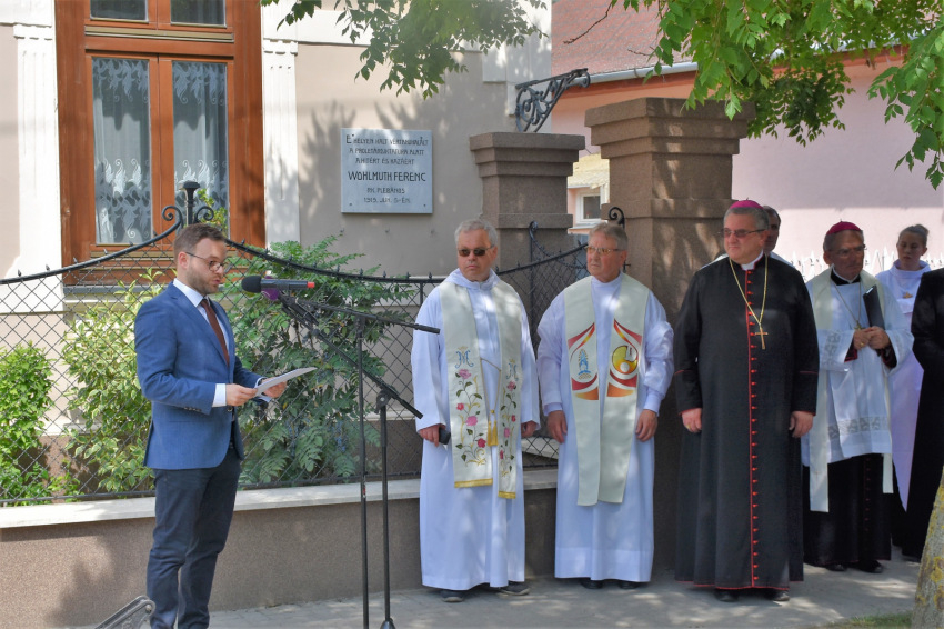 Az emléknap a községháza előtt folytatódott, ahol Wohlmuth Ferenc az utolsó óráit töltötte. Beke Gyöngyi, Császár polgármestere ünnepi beszédében felelevenítette ezeket az órákat, valamint a vértanúságot megelőző éveket, melyek során Wohlmuth Ferenc számtalanszor bizonyította, senkinek sincs nagyobb szeretete annál, mint aki életét adja barátaiért. A plébános ritkán költött magára, emiatt sokan fukarnak tartották, holott vagyonából a falu szegényeit segítette, akik számára jótékonysági alapítványt is létrehozott. Beke Gyöngyi kifejtette,