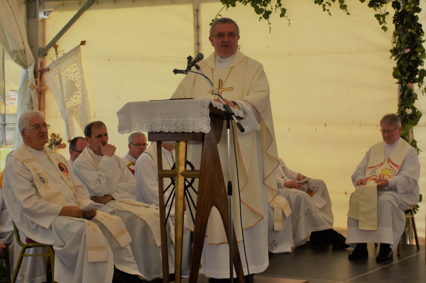 Homíliájában Veres András megemlítette, 2018 óta pünkösdhétfő napján Szűz Máriát, az Egyház Anyját ünnepeljük. Számos képzőművészeti alkotáson láthatjuk, hogy Mária az apostolokkal együtt volt a Szentlélek kiáradásának idején, így ő lett az egész egyháznak is édesanyja. A történelem során gyakran volt szükségünk az Égi Édesanya támogatására, ő lett a vértanúk segítsége is, hiszen az Egyház történetét végigkísérték és kísérik ma is az üldöztetések.