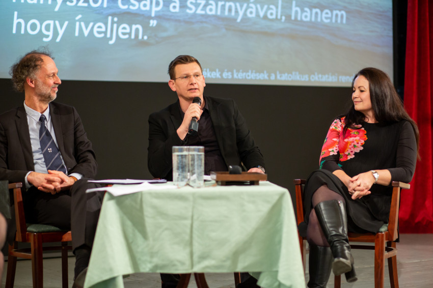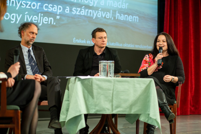A kerekasztal-beszélgetésen Vörös Zsuzsanna arról is szólt, hogy nehézségek idején a katolikus vezetői helytállásban alapvető tényező a bizalom a Gondviselésben. Barlay Bence elmondta, sok lelkesítő inspirációt kap a gyerekektől, a kollégáktól, s a vezetői továbblépés jegyében 56 évesen beiratkozott a Semmelweis Egyetem mentálhigiénés képzésére. Legszívesebben kötelezővé tenné egy komoly mentálhigiéné kurzus elvégzését a pedagógusok számára.