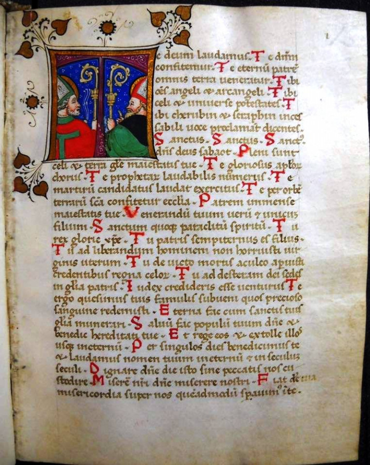Leginkább Szent Ágostonhoz és Ambrushoz kötik az eredetét, de egyes szövegrészletekkel 3. századi liturgikus töredékekben is találkozunk (prefációk, húsvéti eucharisztikus imák). A jelenleg alkalmazott szöveg a Sacramentarium Gregorianum szövegalkalmazási korszakában (7. század) már megszilárdult, de a feltevésekkel akár egyetértésben is ki kell jelenteni, hogy jelenleg ismeretlen a himnusz szerzője. Szent Benedek Regulája már előírja a vasárnapi és ünnepi zsolozsma végzése során, de a pontos szöveget és a szerzőt nem közli. A megszokott liturgikus helye a hajnali imaóra volt, de körmeneteknél és nem egyházi eseményeknél is elénekelték hálából.