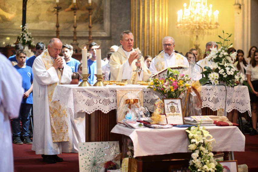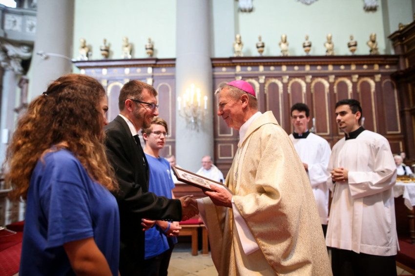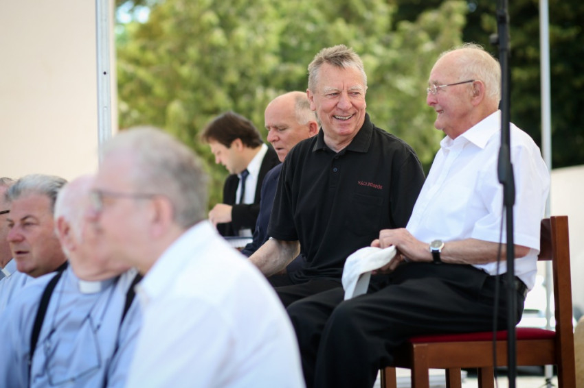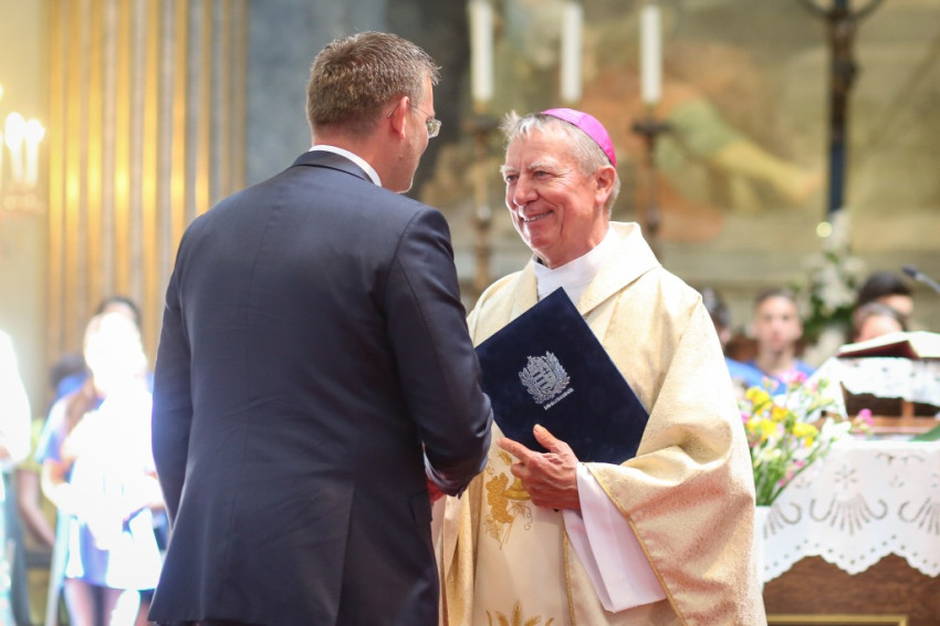 A homíliát követően az intézmények képviseletében tanárok, diákok adták át születésnapi ajándékaikat a püspöknek, aki a szentmise végén megköszönte mindenkinek a jelenlétét, majd jó bizonyítványt, vidám szünidőt kívánt a gyerekeknek, akiket a kijáratnál a nagy hőségben fagyival vártak a szervezők.