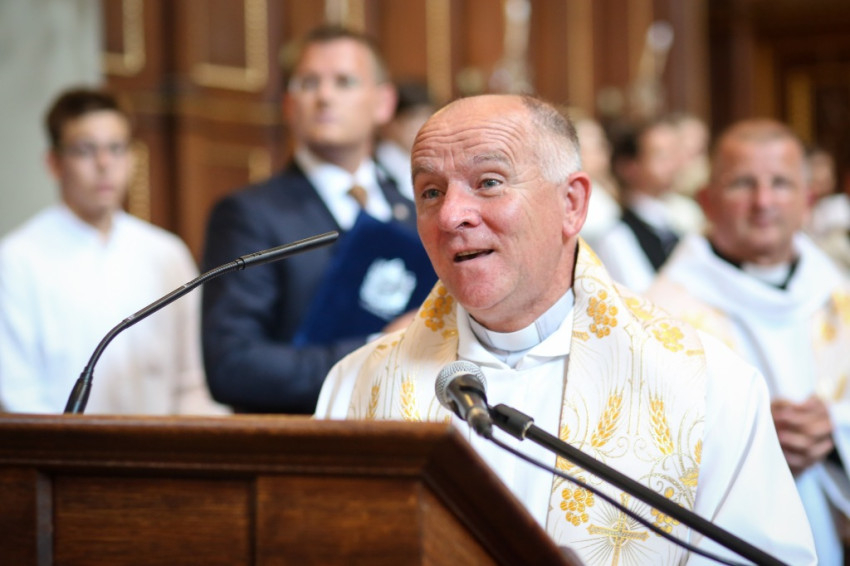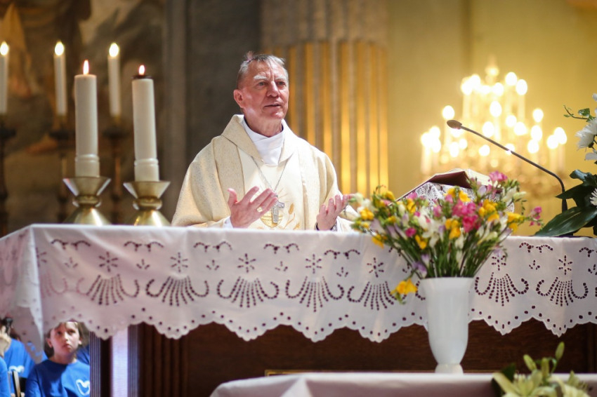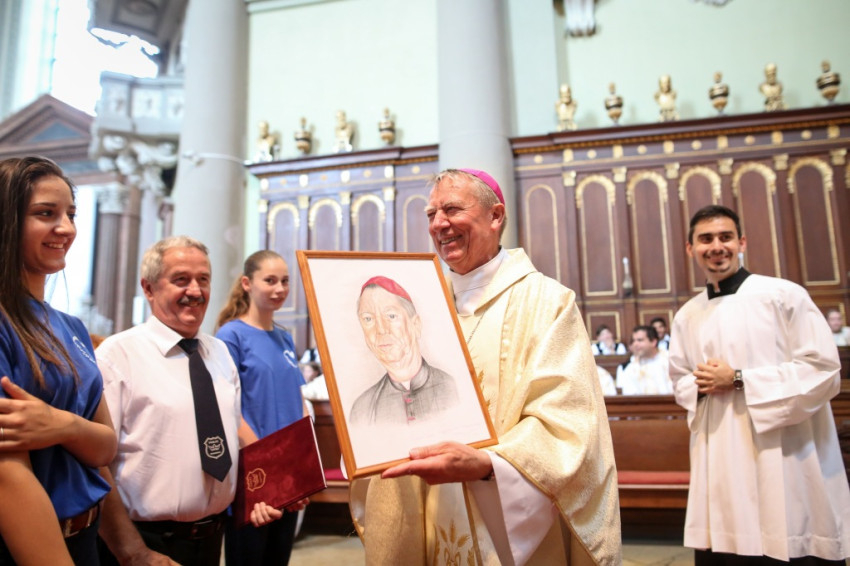 Homíliájában felidézte gyerekkorát, iskolás éveit, hogy milyen nagy hálával gondol vissza első tanító nénijére és más tanárokra, osztálytársakra. Köszönetet mondott Istennek, amiért bízik bennünk, értelmet ad az életünknek. A felolvasott evangéliumi részből kiemelte a fügefát, amely nem hozott termést – ilyen, amikor nincs értelme az életnek – és köszönetet mondott Istennek, amiért általa is gyümölcsöket hozott. Csodálatos számára, hogy Isten bizalmát, jelenlétét élvezte a szolgálatában. Megosztotta, milyen sok üzenetet kapott régi tanítványoktól, cserkészektől, hittanosoktól – jó érzés, hogy Isten általa sok szeretetgyümölcsöt osztott szét.