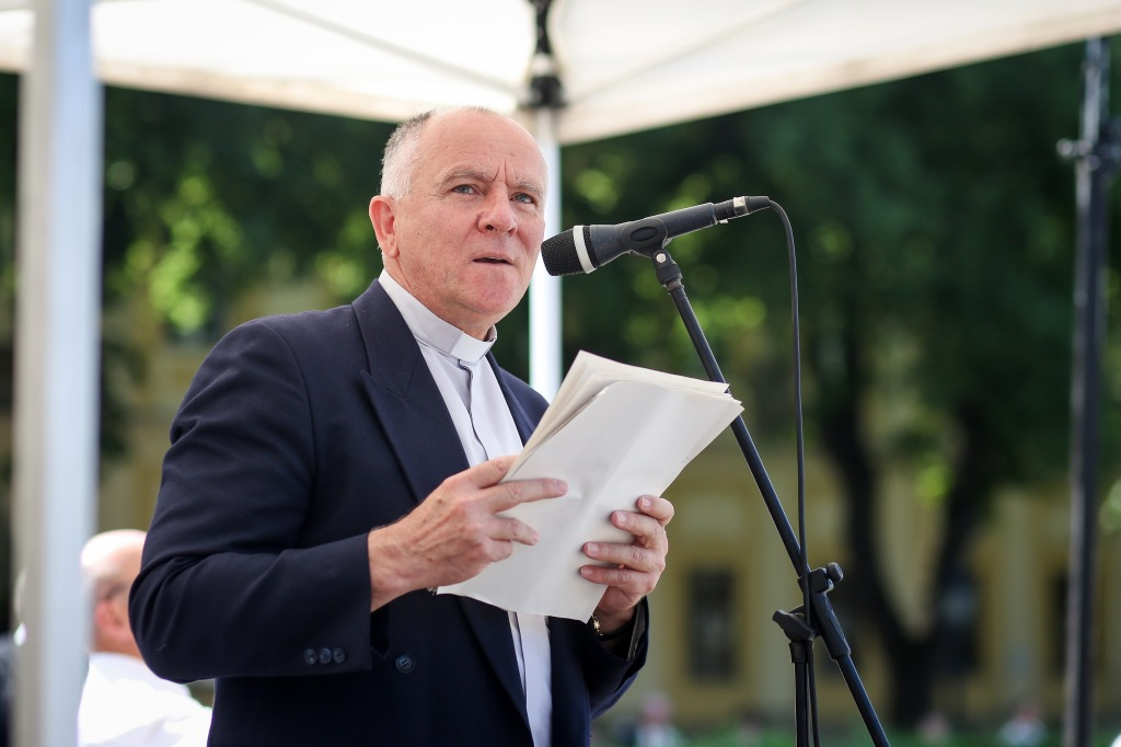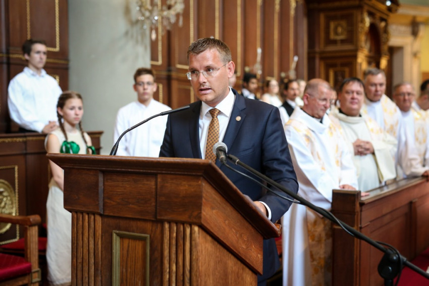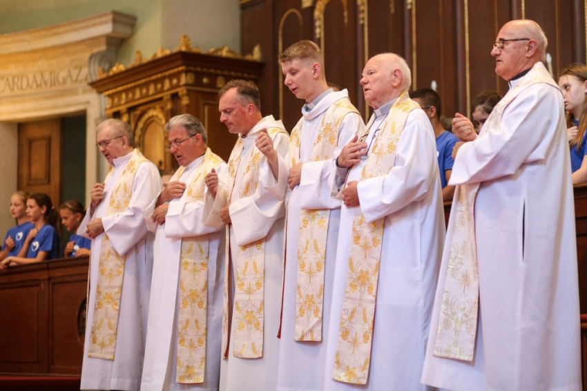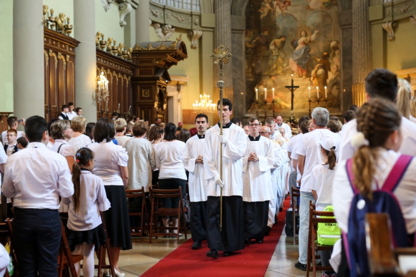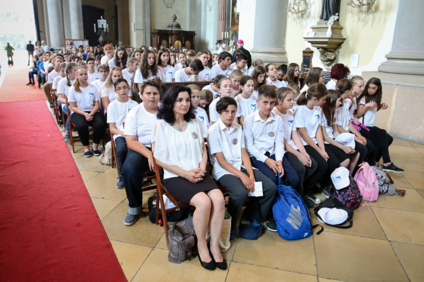 Az Egyházmegyei Katolikus Iskolák Főhatóságához 27 intézmény tartozik, amelyekbe összesen 9211 gyermek jár, közülük 1315 óvodás. Csáki Tibor, a főhatóság igazgatója köszöntötte azt az 1200 diákot és pedagógust, akik összegyűltek az ünnepségre. „Akik reményből élnek, messzebb látnak, akik szeretetből élnek, mélyebben látnak, akik hitből élnek, más fényben látnak” – idézte egy teológus írását, és hozzátette, erre a látásmódra szeretnék megtanítani a gyerekeket. Elmondta, hogy ebben a szentmisében különösen imádkoznak a 75. születésnapját ünneplő Beer Miklós püspökért, és felidézte azokat a szavakat, amelyekkel minden szentmisében imádkozunk püspökeinkért.