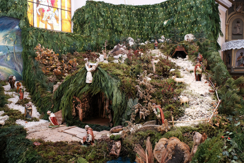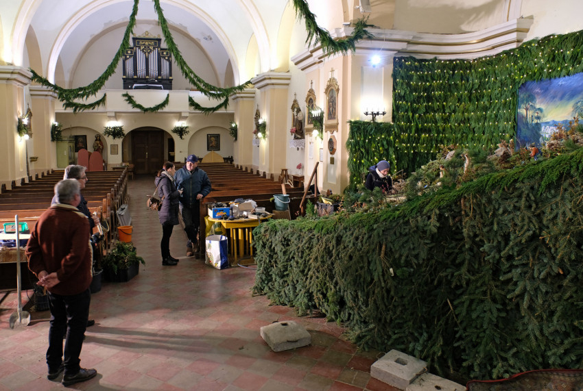 A plébánia udvarán elhelyezett fenyőfák már talpakba állítva várják, hogy a templom díszei legyenek, odabent pedig helyi asszonyok hosszú asztalokat terítenek a bejelentkezett vendégeknek. Ungvárszki Imre balatonszentgyörgyi plébános – aki Vörsöt is ellátja – ugyancsak kiveszi a részét a készülődésből: telefonja folyton-folyvást csörög, hol zarándokcsoportok vezetői, hol különböző médiumok képviselői keresik, hogy megtekinthessék az egyedülálló betlehemet. Együtt megyünk át a templomba, amelynek oldalajtóján belépve elénk tárul a csoda: megelevenedik az időszámításunk kezdeti Szentföld köves-cserjés panorámája a szelíd somogyi dombok erdőivel – még egy parányi Balatonnal is – ötvözve, s elhozva ide is a megváltás örömhírét. Bár a kompozíció előtt egy kisasztalon még szerszámok sorakoznak, sőt, még a Szent Család is az egyik padban „ülve” várakozik, szinte a betlehem végleges állapotát csodálhatjuk meg.