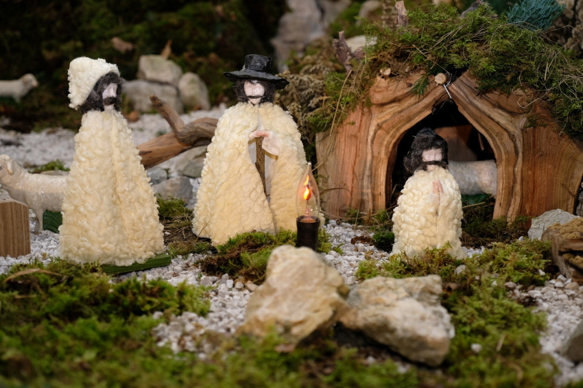 Míg beszélgetünk, fotós kollégám felfedezi, hogy a kis tavacskában egy apró, átlátszó sziget is helyet kapott. Első látásra egy darab jégre emlékeztet. Vajon mire szolgál? A titok rövidesen kiderül: idős férfi érkezik, aki egy kerámiából készült parányi kacsát tart a kezében. A „harci sérülést” szenvedett állatfigurát az imént javította meg, s óvatosságra int minket, mivel a ragasztó még nem száradt meg. Ez a kacsa fog ülni a szigetecskén, sőt, kavicsokkal és hínárra emlékeztető növényekkel is díszítik a tavat – teszi hozzá Gere László. Nyugdíjba vonulása óta minden évben ő vezényli a betlehem építését.