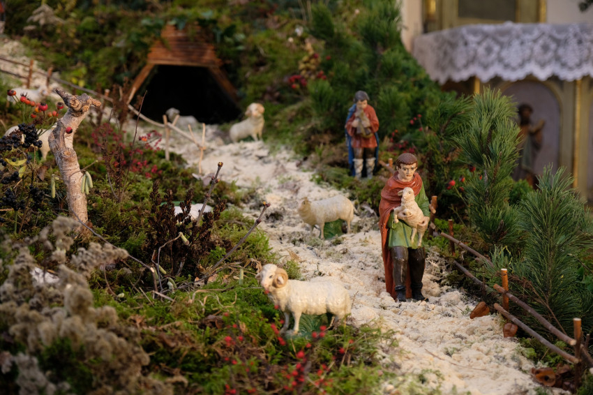 Köcski István az építés kulisszatitkaiba is beavat: az ötven négyzetméteres alkotáshoz idén tizennyolc láda mohát használtak fel, illetve felajánlásoknak köszönhetően számos fenyő- és tujaágat, termésköveket. Bár az alapkoncepció ugyanaz, a betlehem mégis minden évben egy kicsit más: idén kevesebb moha borítja, épült egy hidacska és egy újabb barlang, valamint új helyet kaptak a tavaly először szerepelt subás pásztorfigurák. A másfél héten át tartó munkában tizenketten-tizenhárman vettek részt, a legfiatalabb betlehemépítő huszonkét, a legidősebb hetvenkilenc éves. „Teljesen ingyen építik a betlehemet – teszi hozzá Köcski István. – Ez a mi szeretetszolgálatunk a vendégeknek.”