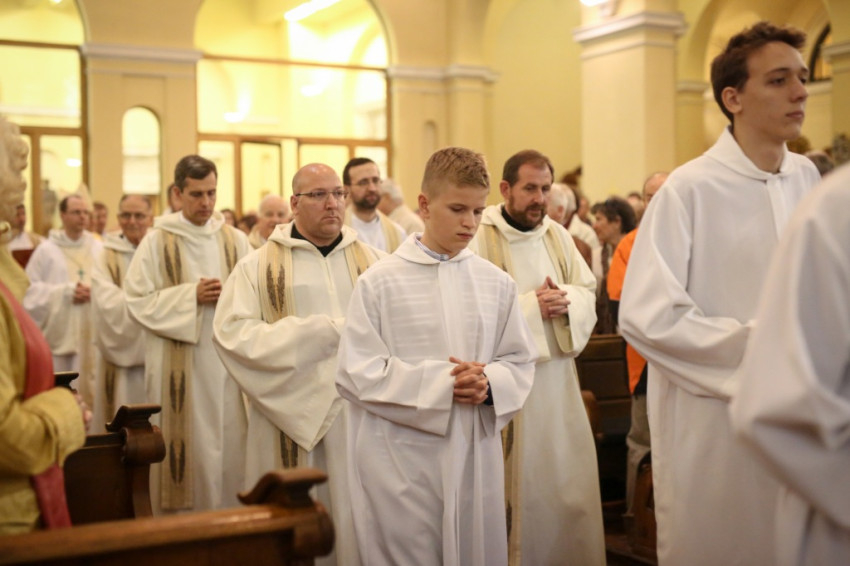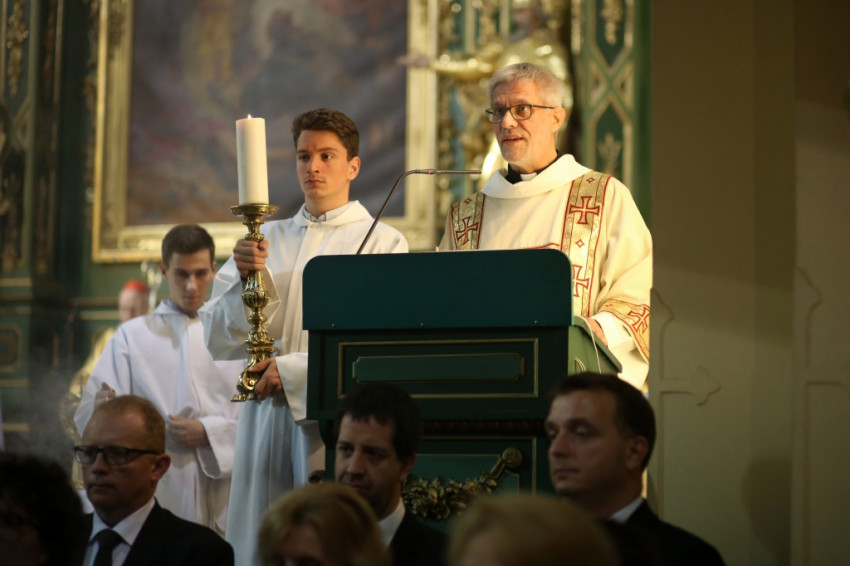 Az ünneplő közösséget a templom plébánosa, Szkaliczki Csaba Örs OCist köszöntötte.