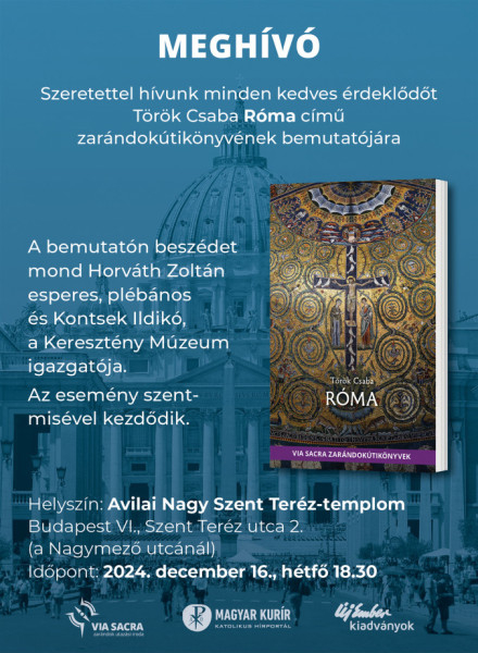 Török Csaba Róma című kötete már előrendelhető, december 13-tól pedig megvásárolható az Új Ember könyvesboltban (Budapest, V. kerület, Ferenciek tere 7–8. Nyitvatartás: hétfőtől péntekig: 9–18 óráig), vagy megrendelhető az Új Ember online könyváruházban.