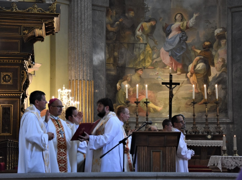 A főpásztor szentbeszédében megemlékezett a Szent István király által alapított közel ezeréves váci püspökségről; a Géza királynak köszönhető első székesegyházról, amelyet a tatárjárás pusztított el; a Báthori Miklós püspök építette püspöki templomról, melyet a törökdúlás rombolt le, majd a jelenlegi katedrálisról, amely gróf Migazzi Kristóf váci püspök, bécsi herceg érsek műve.