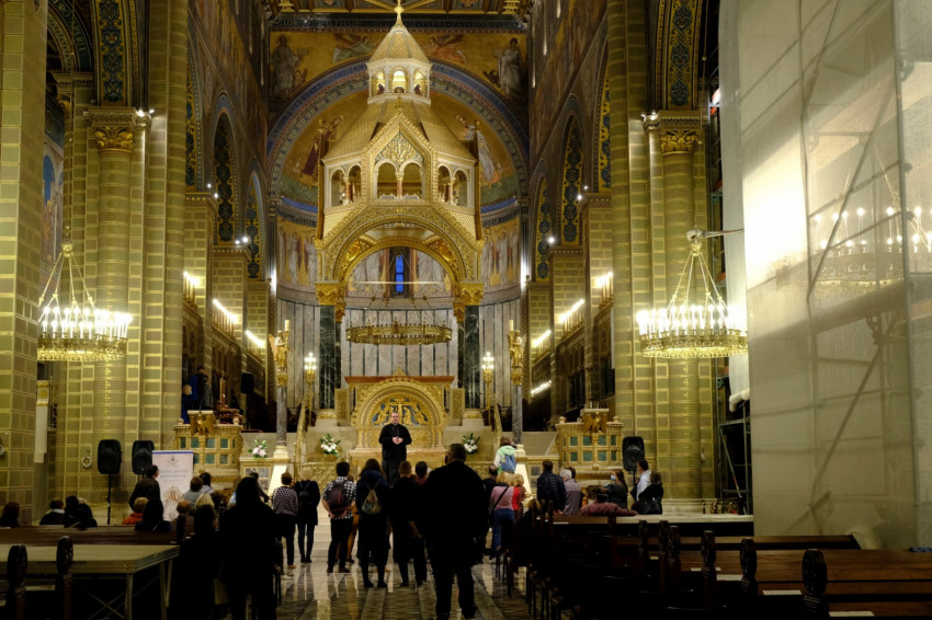 A székesegyház művészeti és liturgikus értelemben egyaránt értékes elemeinek bemutatása mellett Kajtár Edvárd plébános ismertette a főtemplom építésének eseményeit, majd az épület további történetét, az átépítéseket és restaurálásokat.