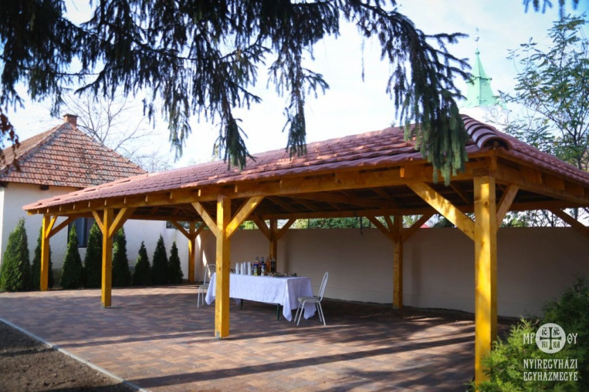 A templom udvarán filagóriával kialakítottak egy nagyobb csoportok befogadására is alkalmas, fedett részt.