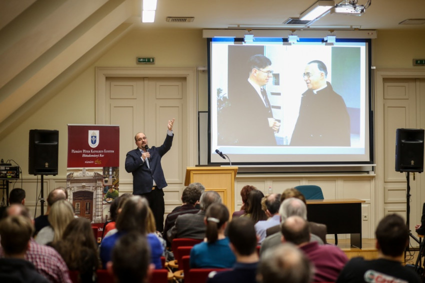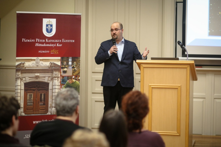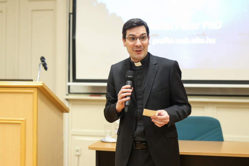A jelenlévőket Kránitz Mihály, a PPKE HTK dékánja köszöntötte, majd Gájer László, a 2. Számú Keresztény Bölcseleti Tanszék vezetője bemutatta az előadót. Raffai Péter asztrofizikus, az Eötvös Loránd Tudományegyetem Atomfizika Tanszékének adjunktusa, egyetemi oktató, kutató, a hazai kozmológia meghatározó alakja. 2004-ben a California Institute of Technology egyetem nyári gyakorlatának LIGO-ösztöndíjat nyert résztvevőjeként kezdhette meg kutatásait a gravitációshullám-asztrofizika területén. Tagja és társalapítója a 2007-ben megalakult Eötvös Gravity Research Groupnak (EGRG), amely a megalakulásától a LIGO Scientific Collaboration (LSC) nemzetközi kutatói együttműködés tagcsoportja. Tagja annak a kutatói együttműködésnek, amely 2015 szeptemberében elsőként észlelt gravitációs hullámokat, melyek két fekete lyuk összeolvadásának utolsó pillanataiban keletkeztek. (Azóta újabb észlelések is történtek.)