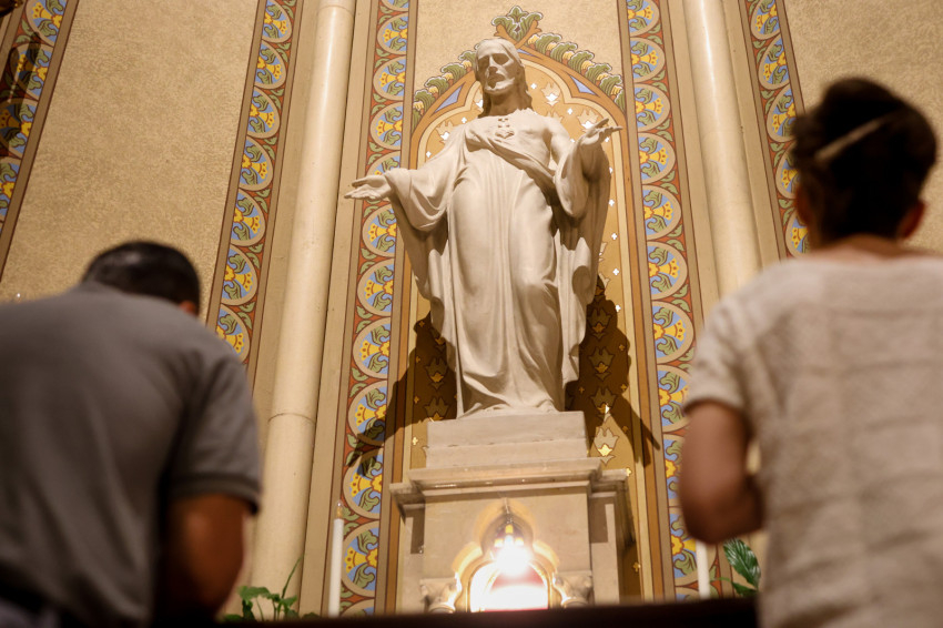 A szentmise végén a hívek Monostori László plébánossal együtt imádkoztak a papi és szerzetesi hivatásokért.