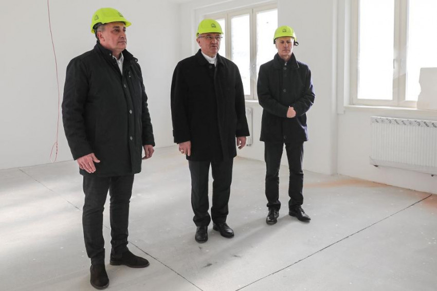 Az egyik megújuló emeleti tanteremben tartott rövid sajtótájékoztatón Veres András megyéspüspök elmondta: a belső munkálatok folynak a gimnázium épületében. A tervek szerint a nyáron be is fejeződik ennek a résznek a kivitelezése. Ez azért fontos, mert a Széchenyi István Egyetemtől bérelt közeli épületben ősztől az első négy évfolyam diákjai tanulnának, és így az alsó tagozat épületrészének felújítása is megkezdődhetne. A kivitelező jó minőségben végzi a munkáját, ez nagy biztonságot ad.