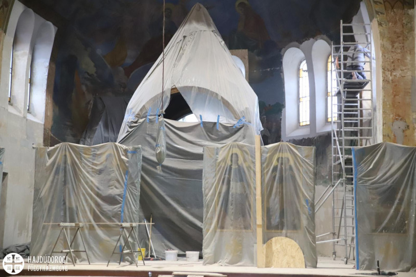 Gál Attila hozzátette: most egy kis izgalom van bennük, hiszen különösen vigyázni kell a szentély padlóburkolatának megbontása során a meglévő ikonosztázionra. Mire lehet számítani? Elmozdulhat, megrepedhet, de természetesen igyekeznek, hogy ez ne történjen meg, ezért próbafúrásokat fognak majd végezni.