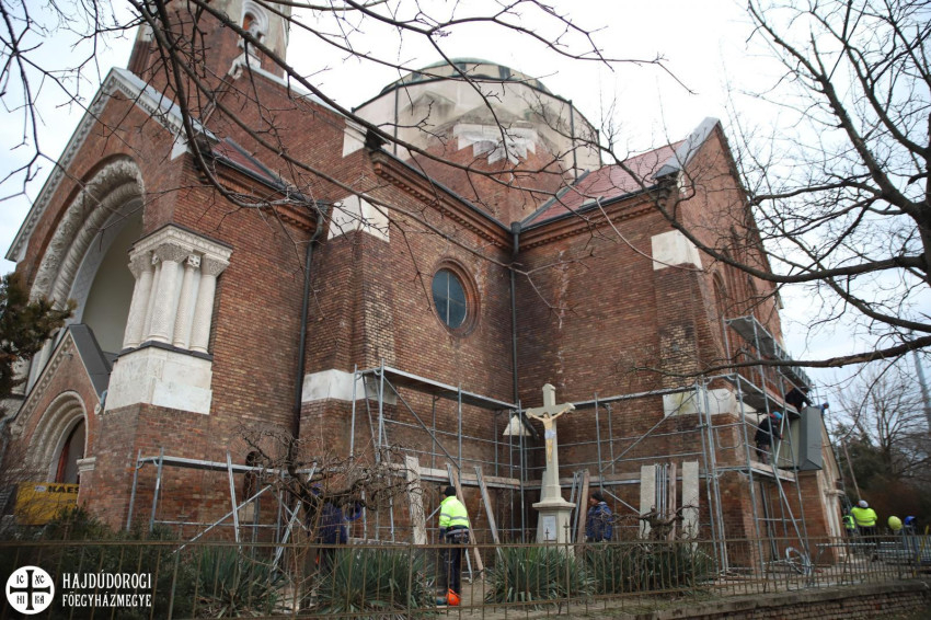 Akik a környéken járnak, már tapasztalhatták a változást: lezárták a templom környékét, munkagépek állnak az udvaron, és már felállványozták az épületet is. A templomtérben tizenkét méter magasságig fel van újítva és le van tisztítva a vakolat. Két méter magasságig pedig lélegző vakolatot helyeztek fel a szakemberek – számolt be róla a kivitelező részéről Gál Attila.