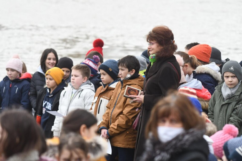 Nagy érték a víz, mely táplál bennünket – hívta fel a gyerekek figyelmét Kocsis Fülöp. – Amit mi most tehetünk, hogy közös imádsággal megszenteljük ezt a folyót, amelyből meríthetünk és hazavihetünk, hogy később a Szent Tamás Görögkatolikus Óvoda és Általános Iskola minden egyes szegletét megszentelhessük vele.